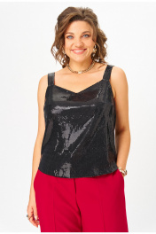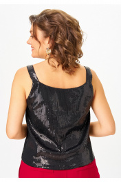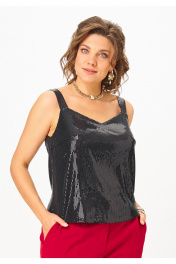 Топ прямого силуэта на широких бретелях, выполнен из трикотажного полотна с мелкими пайетками. Перед с нагрудными вытачками. Горловина переда лёгкой V-образной формы. Спинка цельнокроеная. Хотите выглядеть ярко и стильно на корпоративе или новогодней вечеринке? Тогда этот стильный топ идеально подойдет вам! Блестящие пайетки делают его по-настоящему эффектным и привлекательным.