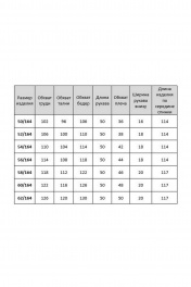 Платье прилегающего силуэта, длиной миди, выполненное из плательной поливискозы. Платье жакетного типа с ассиметричным передом. Одна из сторон переда имитирует жакет и юбку, другая-платье. Перед с талиевыми вытачками с подрезом. В области груди настрочена декоративная листочка, в области бедер - карманы-обманки с листочками и клапаном. По переду обработан разрез. В области талии расположена застёжка на 2 петли и крупные декоративные пуговицы. Спинка со средним швом, в который вставлена потайная молния. Рукав 2-х шовный втачной, длиной 3/4. В 46 размере ширина по груди - 47 см, по талии - 43 см, по бедрам - 50 см. В 48 размере ширина по груди - 49 см, по талии - 45 см, по бедрам - 52 см, длина - 114 см. В 52 размере ширина по груди - 53 см, по талии - 50 см, по бедрам - 55 см. В 56 размере ширина по груди - 57 см, по талии - 54 см, по бедрам - 59 см.