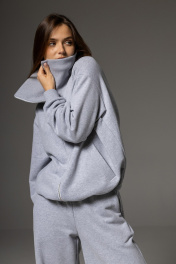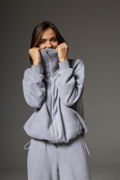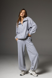 Костюм ( Бомбер с высокой горловиной + брюки палаццо с фиксатором) выполнен из премиального турецкого футера с велюровым напылением.Он отлично держит форму и обладает исключительными теплорегуляторными функциями. Бомбер с высокой горловиной из кашкорсе на металлической молнии. Горловина красиво смотрится застегнутой, а также раскладывается на плечи, если молнию не застегивать до верха. Внизу втянута резинка фиксатор, позволяющая затягивать низ бомбера либо оставлять свободно ниспадающим.Прорезные карманы на передней планке с обеих сторон декорированы широкой диагональной листочкой.Длина бомбера от плеча для размера S и М -60 см, для размера L - 66 cм. Длина рукава от горловины 72 см. Брюки палаццо с фиксатором позволяют носить брюки как прямыми, так и затянутыми на резинку-фиксато,особенно хорошо это в дождливую погоду, так как зафиксирорвав брюки, вы не дадите им загрязниться и вымочиться.Хлопковый шнур в поясе позволяет формировать оъем талии по мере необходимости. Абсолютно универсальное изделие для любого гардероба и стиля. Не образуются катышки на лицевой стороне изделия, цвет зделия остается ярким и насыщенным даже после 50 стирок. Уход за изделием: деликатная стирка с жидким моющим средством при температуре 30-40 градусов. При стирке использовать мягкие моющие средства. не применять отбеливающие средства.