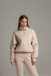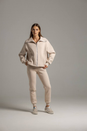 Бомбер с высокой горловиной и брюки на манжете из премиального футера Twok 300955 латте
