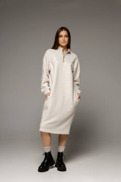 Платье с высоким воротником и металлической молнией из теплого футера Twok 400802 белый меланж