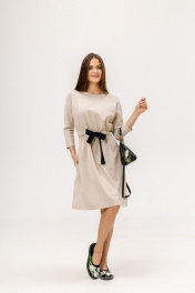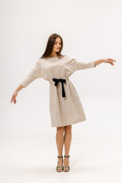Платье из умягченного льна с эфффектом мятости с цельнокроенным рукавом и цветным акцентным поясом, который сразу делает платье стильным. Сзади пояс собран на резинку, что создает красивый силуэт "песочных часов" , а также равномерную сборку. Спереди можно сделать талию по своему обьъему, завязав пояс либо на бант, добавив игртвости и настроения образу, либо поперечно спустив, завязав на узел. Обхват на уровне груди 58 см, длина рукава 56 см, ширина на уровне карманов 58 см. Длина изделия 100 см. Сзади застежка на пуговицу. Минимальный уход-максимальный комфорт.