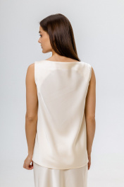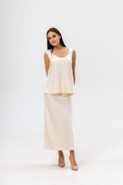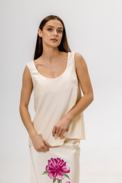 Топ из струящегося искусственного шелка, благодаря крою по косой красиво ниспадает сверху вниз. Глубокая круглая горловина и широкие шлейки эфектно оформляют зону декольте. Не мнется, не теряет форму, не требует сложного ухода, просто надеваешь и выглядишь идеально. Особенно хорошо топ комбинируется с юбкой мидакси Артикул 555501 и юбкой с ручной росписью Артикул 555511 Стирка рекомендована ручная, в холодной воде с жидким моющим средством