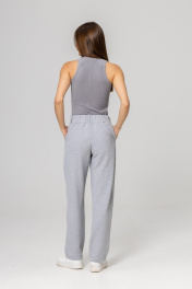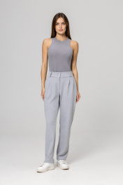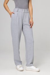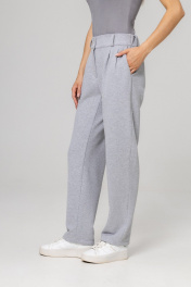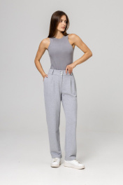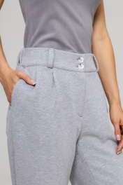 Брюки из хлопкового футера с велюровым напылением, зауженные книзу, с высокой талией.и Притачной пояс со шлевками, сзади на резинке, передние половины со складками, застежка на молнию и пуговицы, боковые карманы. Длина внутреннего шва брюк 78 см