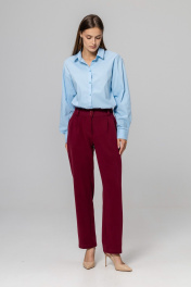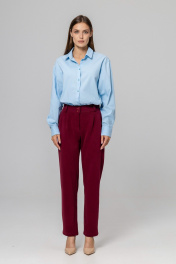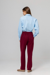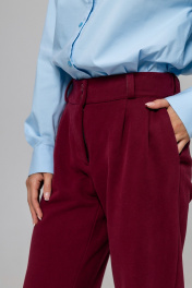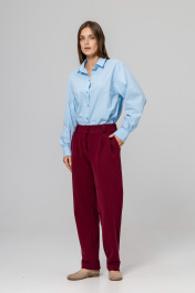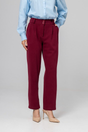 Брюки из хлопкового футера с велюровым напылением, зауженные книзу, с высокой талией.и Притачной пояс со шлевками, сзади на резинке, передние половины со складками, застежка на молнию и пуговицы, боковые карманы. Длина внутреннего шва брюк 78 см