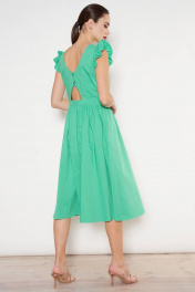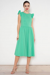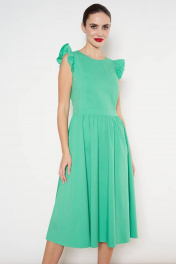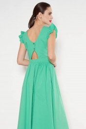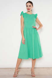 Очень женственно и соблазнительно смотрится летнее платье модного цвета длиной до щиколотки.Это платье придаст вашему образу запоминающийся и романтический образ.Платье женское силуэта песочные часы, длиной миди, на отлетной подкладке. Платье отрезное по линии талии с втачным поясом. Верхняя часть переда платья с талиевыми вытачками. Спинка с талиевыми вытачками и с центральной фигурной застежкой на две петли и пуговицы. Платье без рукавов, с крылышками. Горловина по переду круглой формы, спинка горловины с V-образным вырезом. Нижняя часть платья со сборкой по талии. В боковых швах нижней части платья обработаны карманы в швах. В левом боковом шве платье застежка на потайную тесьму-молнию. Средняя длина платья по спинке от плечевого до талии - 40,0 см (±3,0 см), средняя длина платья по середине спинки от талии до низа с учетом втачного пояса - 79,0 см (±3,0 см), ширина втачного пояса - 3,5 см (±1,0 см). Тип ткани: блузочно-плательная. Состав платья: лен - 53%, вискоза - 47% Состав подкладки - хлопок 100%