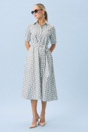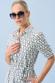 Белое с синим платье женское от URS - это летнее платье женское в морском стиле, которое легко вписывается и в городской гардероб, и в отпускные образы. Модель выглядит свежо, собранно и женственно: приталенный силуэт, длина ниже колена и аккуратные детали делают это хлопковое платье удачным выбором на каждый день, для прогулок, на работу и для отдыха у моря. Платье женское свободного силуэта ЮРС, расклешенное к низу, с карманами в боковых швах, выполнено из плательной принтованной ткани. Платье предназначено для повседневной носки. Перед цельный, в верхней части с застежкой на притачную потайную планку, застегивающуюся на 4 петли и пуговицы. Спинка со средним швом. Горловина оформлена воротником с отрезной стойкой, застегивающейся на 1 петлю и 1 пуговицу. Концы вороника острые. Рукава втачные, короткие. Рукав по низу со сборкой на резинку шириной 2,5 см, с двумя пробивными люверсами, через которые протянута декоративная тесьма Съемный пояс шириной 5,0см выполнен также из плательной принтованной " 44 размер Длина по среднему шву спинки - 126,0 см (±3,0 см), Ширина спинки - 36,5 см (±0,5 см), Ширина на уровне глубины проймы - 49,0 см (±1,0 см), Ширина на уровне линии талии - 56,0 см (±1,0 см), Ширина на уровне линии бедер - 66,0 см (±1,0 см), Ширина платья по низу - 101,0 см (±1,0 см), Длина плеча - 12,0 см (±0,5 см). Длина рукава - 30,0 см (±0,5 см), Ширина рукава - 17,5 см (±0,5см), Ширина рукава по низу (с резинкой) - 15,0 см (±0,5 см), Ширина съемного пояса - 5,0 см (±0,5 см), 46 размер Длина по среднему шву спинки - 126,0 см (±3,0 см), Ширина спинки - 37,5 см (±0,5 см), Ширина на уровне глубины проймы - 52,0 см (±1,0 см), Ширина на уровне линии талии - 58,0 см (±1,0 см), Ширина на уровне линии бедер - 68,0 см (±1,0 см), Ширина платья по низу - 103,0 см (±1,0 см), Длина плеча - 12,0 см (±0,5 см). Длина рукава - 30,0 см (±0,5 см), Ширина рукава - 18,5 см (±0,5см), Ширина рукава по низу (с резинкой) - 15,5 см (±0,5 см), Ширина съемного пояса - 5,0 см (±0,5 см), 48 размер Длина по среднему шву спинки - 126,0 см (±3,0 см), Ширина спинки - 38,0 см (±0,5 см), Ширина на уровне глубины проймы - 54,0 см (±1,0 см), Ширина на уровне линии талии - 60,0 см (±1,0 см), Ширина на уровне линии бедер - 70,0 см (±1,0 см), Ширина платья по низу - 105,0 см (±1,0 см), Длина плеча - 12,0 см (±0,5 см). Длина рукава - 31,0 см (±0,5 см), Ширина рукава - 19,0 см (±0,5см), Ширина рукава по низу (с резинкой) - 17,0 см (±0,5 см), Ширина съемного пояса - 5,0 см (±0,5 см), 50 размер Длина по среднему шву спинки - 126,5 см (±3,0 см), Ширина спинки - 38,5 см (±0,5 см), Ширина на уровне глубины проймы - 56,0 см (±1,0 см), Ширина на уровне линии талии - 62,0 см (±1,0 см), Ширина на уровне линии бедер - 72,0 см (±1,0 см), Ширина платья по низу - 107,0 см (±1,0 см), Длина плеча - 12,5 см (±0,5 см). Длина рукава - 31,0 см (±0,5 см), Ширина рукава - 20,0 см (±0,5см), Ширина рукава по низу (с резинкой) - 17,0 см (±0,5 см), Ширина съемного пояса - 5,0 см (±0,5 см), 52 размер Длина по среднему шву спинки - 126,5 см (±3,0 см), Ширина спинки - 40,0 см (±0,5 см), Ширина на уровне глубины проймы - 58,0 см (±1,0 см), Ширина на уровне линии талии - 64,0 см (±1,0 см), Ширина на уровне линии бедер - 74,0 см (±1,0 см), Ширина платья по низу - 109,0 см (±1,0 см), Длина плеча - 12,5 см (±0,5 см). Длина рукава - 31,5 см (±0,5 см), Ширина рукава - 21,0 см (±0,5см), Ширина рукава по низу (с резинкой) - 17,5 см (±0,5 см), Ширина съемного пояса - 5,0 см (±0,5 см), 54 размер Длина по среднему шву спинки - 126,5 см (±3,0 см), Ширина спинки - 40,5см (±0,5 см), Ширина на уровне глубины проймы - 60,0 см (±1,0 см), Ширина на уровне линии талии - 66,0 см (±1,0 см), Ширина на уровне линии бе