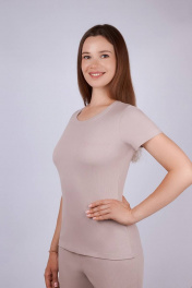 Фуфайка женская из хлопкового полотна кашкорсе. Рукав короткий втачной. Круглая горловина.