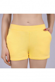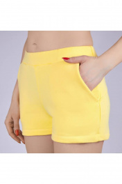Круглогодичные желтые шорты из футера с карманами и высокой посадкой Verally 438М-1 желтый
