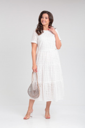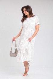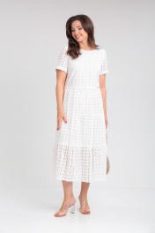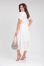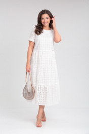 Белое летнее платье из хлопка с воланами и отрезным лифом Verita 2286 молочный