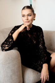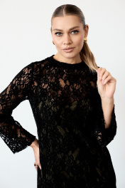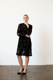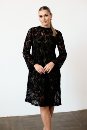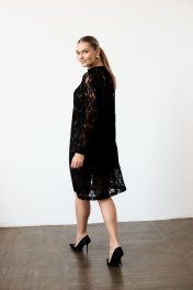 Платье женское А-образного силуэта. Выполнено из кружевной ткани. Горловина круглой формы, по спинке застежка на потайную молнию. Рукав длинный втачной, слегка расширенный книзу. Платье на подкладке. 46 48 50 52 ОГ 94 100 104 108 ОТ 94 100 104 108 ОБ 102 106 110 114 Длина рукава с манжетой от горловины 65 Длина по спинке. 103