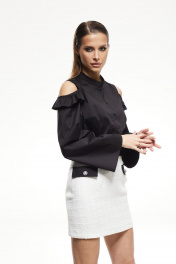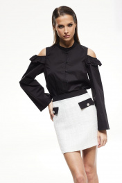 Юбка мини из ткани рогожка. Застежка по спинке на декоративную молнию. Верх с поясом. Спереди клапаны с пуговицами. Пояс и клапаны выполнены в контрастном цвете. Юбка на подкладке.