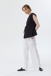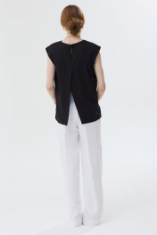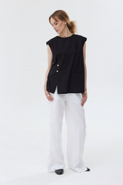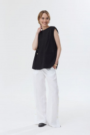 Limited Edition!Блузка без рукавов из льняной ткани. Прямой силуэт. Горловина круглой формы. Застежка по горловине спинки на петлю и пуговицу. По переду в рельефе шлица с застежкой на две пуговицы. На переде прорезной карман с листочкой. В среднем шве спинки шлица. Длина блузки до бедер. "44 р-р: ОГ - 98 см., ОТ - 97 см., ОБ - 98 см. 46 р-р: ОГ - 102 см., ОТ - 101 см., ОБ - 102 см. 48 р-р: ОГ - 106 см., ОТ - 105 см., ОБ - 106 см. 50 р-р: ОГ - 110 см., ОТ - 109 см., ОБ - 11 см."