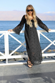 Платье из хлопковой ткани «шитье» А - силуэта. Длина макси. Платье отрезное под грудью. По центру переда кулиса с завязкой. Платье с открытыми плечами. Рукав длинный, широкий. В боковых швах разрезы. Платье на хлопковой подкладке. 44 р-р: ОГ - 96 см., ОТ - 90 см., ОБ - 112 см. 46 р-р: ОГ - 100 см., ОТ - 94 см., ОБ - 116 см. 48 р-р: ОГ - 104 см., ОТ - 98 см., ОБ - 120 см. 50 р-р: ОГ - 108 см., ОТ - 102 см., ОБ - 124 см. 52 р-р: ОГ - 112 см., ОТ - 106 см., ОБ - 128 см.