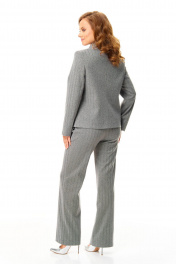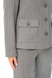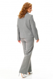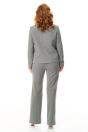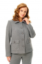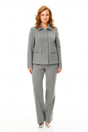 Костюм женский состоит из жакета и брюк. Жакет прямого свободного покроя с естественной линией плеча на подкладке.По переду обработаны нагрудные вытачки и накладные карманы с клапаном.Застежка центральная бортовая на петли-пуговицы.Спинка со средним швом.Воротник отложной.Рукав втачной, полноценной длины.Брюки свободные прямого силуэта.Пояс притачной на резинке.В боковых швах карманы.