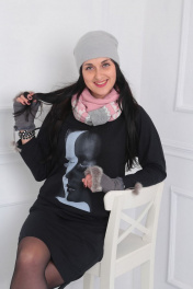 Платье в стиле "спорт -шик " - это тот случай когда тренд не имеет возрастных и весовых ограничений. удобное трикотажное платье с нагрудным карманом и стильным принтом по полочке можно сочетать как с классической так и спортивной обувью. Длина изделия по спинке 99 см Длина рукава от горловины 72 см