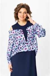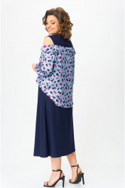 Платье свободного силуэта из двух видов ткани. Платье выполнено из приятного к телу трикотажного полотна, отделочный элемент накидка-рубашка из отделочной тканию. Рубашка не снимается, закреплена на платье.