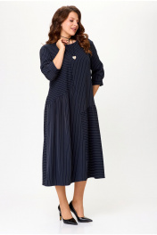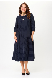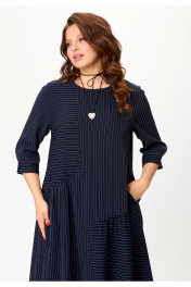 Прекрасный выбор для каждой девушки - платье А-силуэта. Модель отлично подойдёт для создания комфортного образа и сделает привлекательной его обладательницу. Полосатый принт- классика стиля! Правильно подобранное платье в полоску должно быть в гардеробе каждой женщины. Ассиметричные детали и разное направление полоски - изюминка платья. Рукав рубашечного типа, одношовный, длиной 3/4. По низу рукав со складками и на притачной манжете. Верхняя часть полочки платья с нагрудными вытачками и горловиной круглой формы. Спинка платья с диагональным подрезом, нижняя часть спинки со сборкой. В боковых швах обработаны карманы. Данная модель - универсальное и модное решение, которое подойдет для любого случая жизни!