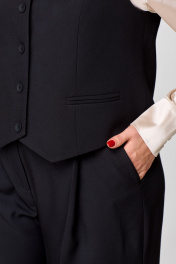 Жилет – очень универсальный элемент гардероба, который уже не просто модный тренд, но и отличная база (легко сочетается практически со всем). Это могут быть «офисные» брюки, идеально — трендовые широкие, юбка, джинсы. Это не только часть делового костюма, но и самостоятельная единица гардероба.. Жилет прямого кроя, по переду имитация карманов прорезные в в рамку, вырез V-образный, спинка разрезная по центру. Жилет на подкладке. Идеально можно сочетать с брюками или юбкой нашего брэнда (товары на фото): брюки модель 115, юбка модель 117. Наслаждайтесь и будьте стильными, надевая модную жилетку в актуальных образах!