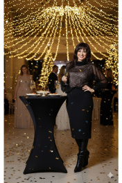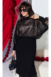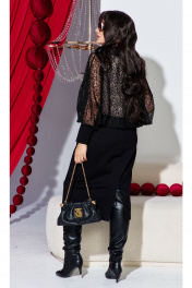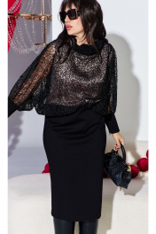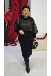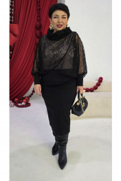 Платье-загадка. В нём ажурная невесомость чёрной сетки на лифе встречается с архитектурной чёткостью воротника-хамута, собранного в изящные защипы. А от него вниз устремляется матовый поток юбки-карандаш, строгий, безупречный и невероятно соблазнительный в своей простоте. Это платье создано для тех, кто знает силу намёка. Глубокий чёрный цвет здесь не просто окрас, а целая история. Высокий воротник-хамут, пронизанный лучами защипов, обнимает шею, как роскошный ошейник, придавая образу отстранённое благородство и лёгкий флёр декаданса. И в противовес воздушному лифу — юбка-карандаш. Сшитая из плотного, послушного трикотажа, она властно лепит форму, подчёркивая линию бёдер и строгость силуэта. Это диалог нежности и строгости, соблазна и сдержанности. Платье полуприлегающего силуэта, отрезное выше уровня талии. Лиф в платье из сетки, с диагональным рельефом по переду. Рукав в платье цельнокроеный со сборкой на высокий манжет. Для удобного прилегания к руке в манжете застёжка на потайную тесьму молнию. Горловина округлой формы с притачным воротником по форме хомут. Лиф в платье с напуском на юбку платья. Юбка в платье со средним швом по спинке переходящим в разрез от низа. Длина платья 110 см (р 48-52), 110,5 см (р 54-58), длина рукава 65,5 см (р 48-52), 59 см (р 54-58). Платье 48 50 52 54 56 58 обхват груди 110 114 118 122 126 130 обхват талии 103 107 111 115 119 123 обхват бедер 108 112 116 120 124 128 ширина рукава внизу 18 18 18 20 20 20
