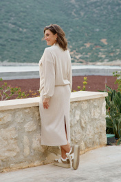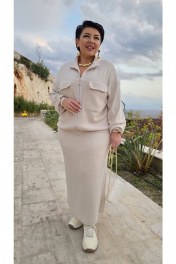 Блузон из «лапши» — это тёплая аккуратность и уютная элегантность в одном изделии. Мелкая рельефная фактура превращает простую форму в тактильную эстетику. Сама фактура делает образ завершённым, а носить его хочется снова и снова. Блузон «оверсайз» силуэта с застёжкой на тесьму-молнию по центру переда, воротником стойкой, линия плеча спущенная. По переду накладные карманы с клапаном. Рукав в блузоне втачной, длинный с притачной манжетой по низу. Спинка без особенностей. По низу блузона притачной пояс. Этот блузон — про заботу о себе: о тепле, удобстве и умеренной эстетике. Он не требует громких украшений, сама фактура делает образ завершённым, а носить его хочется снова и снова. Длина блузона по спинке 57 см, длина рукава 75 см (р 50-54), 76 см (р 56-60). Блузон 50 52 54 56 58 60 обхват груди 118 122 126 130 134 138 обхват бедер 106 110 114 118 122 126 ширина рукава вверху 44 46 48 48 50 52