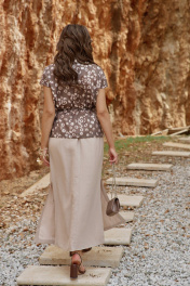 Юбка А-силуэта бежевом оттенке в ткани с лёгкой фактурой— это выбор женщины, которая: ценит элегантность в движении, любит тактильные ощущения — наслаждается прикосновением ткани, предпочитает мягкую женственность, обладает вкусом к деталям, не боится быть заметной — но делает это изящно. В мире, где часто приходится выбирать между комфортом и стилем, эта юбка предлагает и то, и другое — свободу движения и утончённость линий, практичность кроя и художественность фактуры. Юбка длины «миди» А-силуэта служит фоном для акцентов — не перетягивает внимание на себя. По переднему полотнищу юбки имитация гульфика, застроченные складки и декоративные шлёвки. Пояс в юбке на обтачке. В боковом шве юбки застёжка на тесьму-молнию. По спинке вставка эластичной тесьмы-резинки для максимально удобной посадки на фигуру. В среднем шве переда юбки и боковых швах высокие разрезы от низа. Юбка на подкладке. Длина юбки 94 см. "
