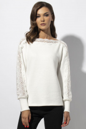 Блуза из вискозы с кружевом и V-образным вырезом VIZAVI 678 молочный