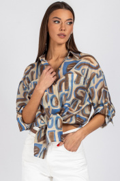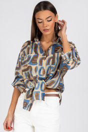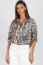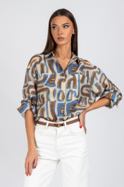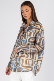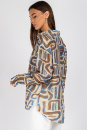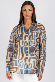 Блуза VIZAVI 725 бежевый+коричневый+голубой