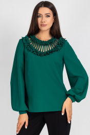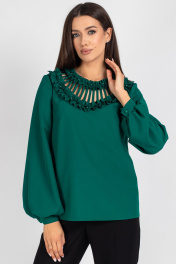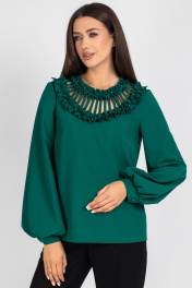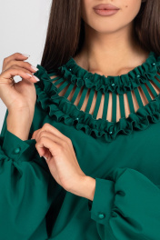 Блузка с капелькой и рюшами на полуприлегающем силуэте VIZAVI 821 изумруд