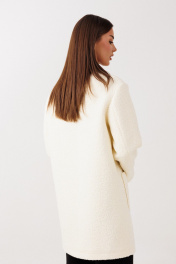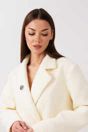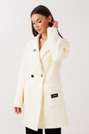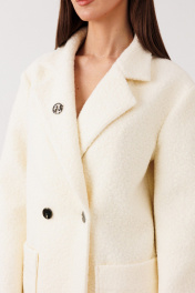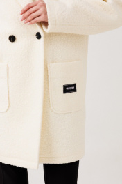 Пальто (буклированная ткань): – прямой силуэт – воротник пиджачного типа – двухбортный – рукав двухшовный – спущенное плечо – накладные карманы – застёжка петли-пуговицы – декоративное украшение – нашивка на кармане.