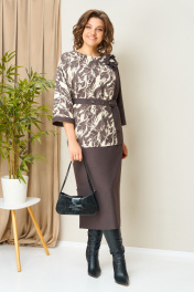 Джемпер, юбка VOLNA 1445 шоколадно-бежевый