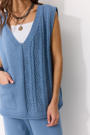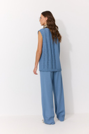 Костюм выполнен из премиальной немецкой пряжи TVU. Брюки свободного кроя . Внутри пояса резинка. Низ брюк оформлен декоративной вязкой, которая делает брюки более комфортными в носке и позволяет самостоятельно регулировать длину. Жилет свободного кроя. Легко комплектуется с майкой , рубашкой или платьем. Длина жилета 63 см, длина брюк по боковому шву 111 см. Для размера S-M : ОГ 104см, ОБ 96 см. Для размера L-XL: ОГ 110 см, ОБ 104